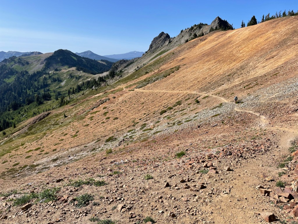 We only had 10 trail miles to White Pass where All In’s son Josh would meet us. This included 4 miles of climbing and 6 miles of downhill to the pass.