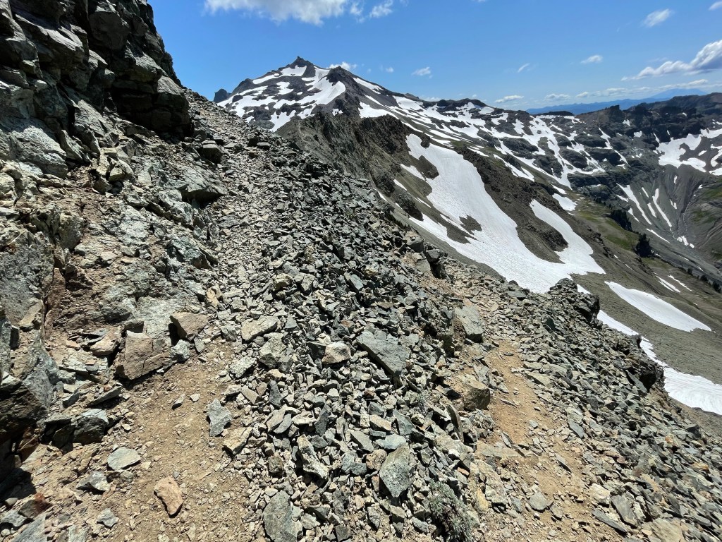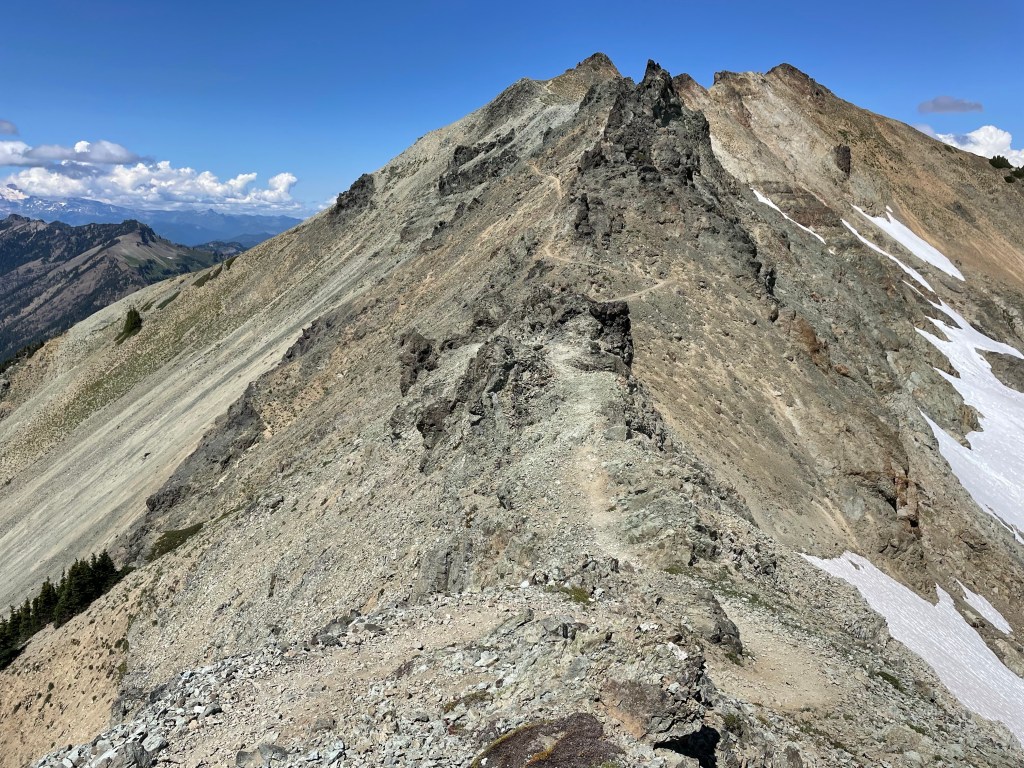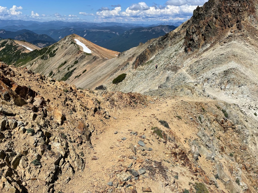The alternate rejoins the PCT after 0.7 harrowing miles. Then the official Knifes Edge trail begins. This was a 1.7 mile section of trail that was either traversing the side of a hill or on top of a ridge. This trail was totally insane and concentration was required at all times because a slip and fall could really ruin your day.