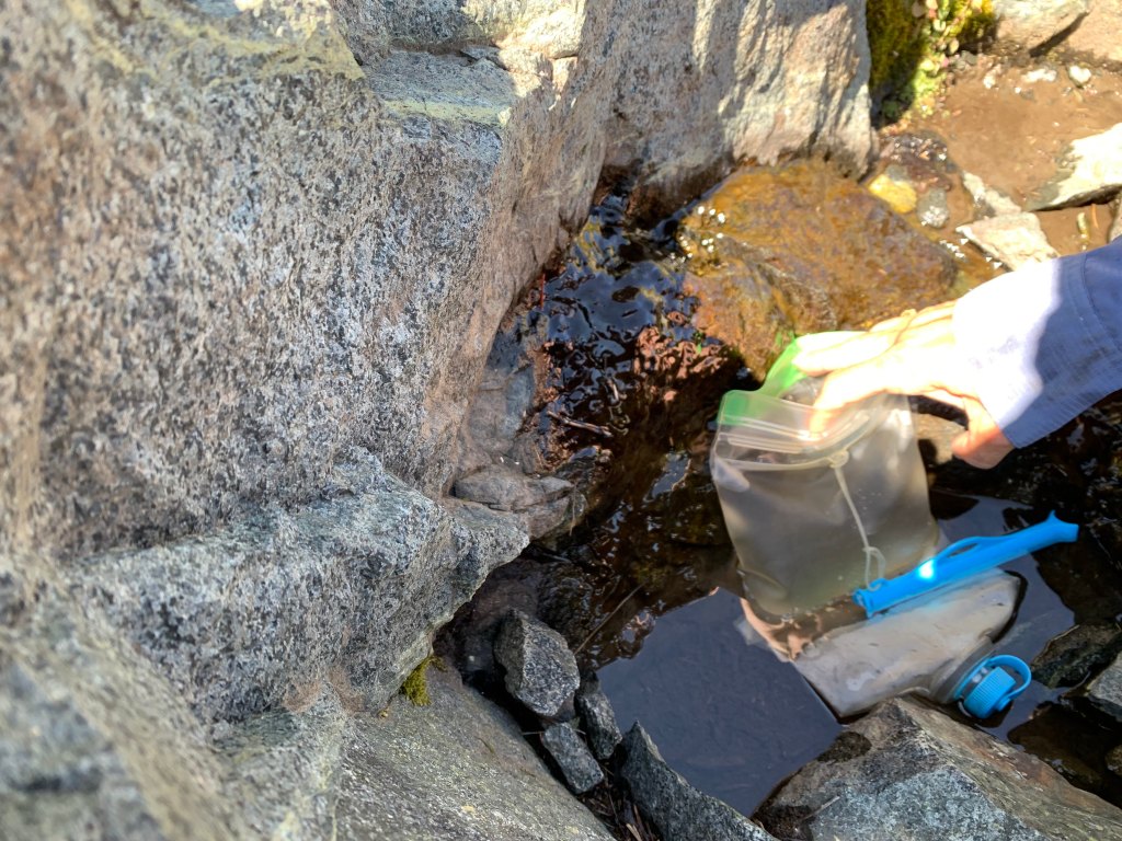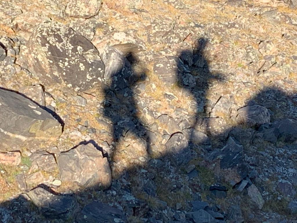 Morning was cold above 12,000 feet but the sun’s warmth penetrated quickly as it rose higher in the sky. There is little shade up here apart from your own shadows. We had four significant climbs today and all above tree line. The last precious water source before a dry stretch of almost 8 miles turned out to be a mere trickle from the base of a rock wall. We almost missed it!