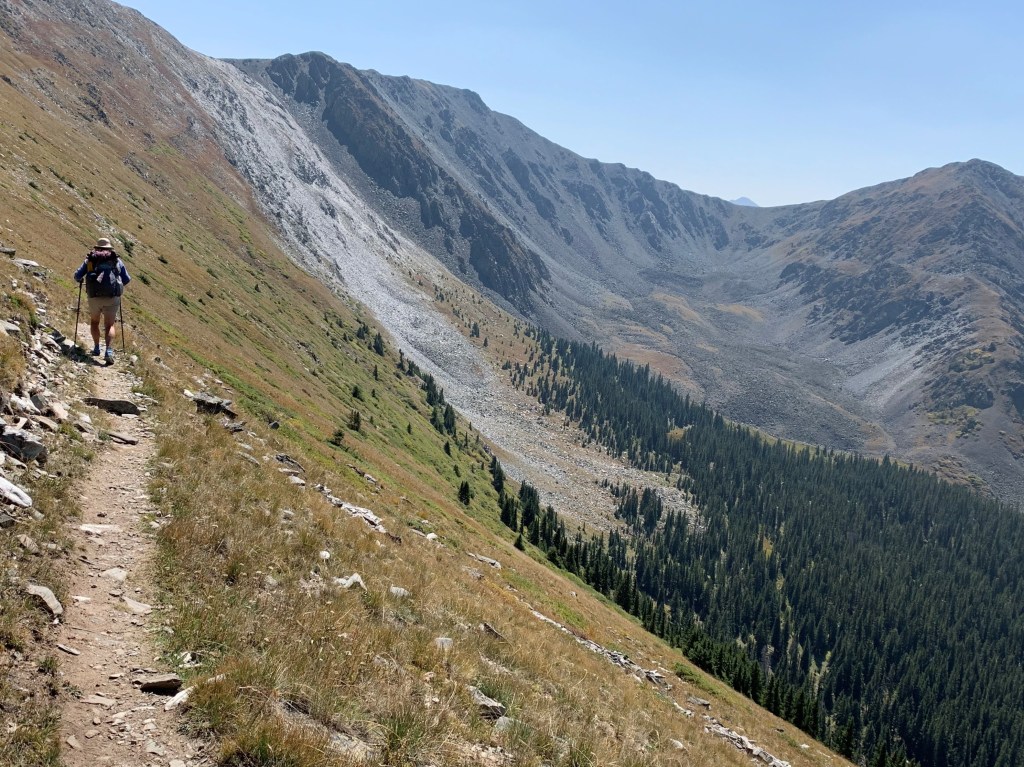 This was a strenuous day on trail but arguably one of the best parts of the Collegiate Loop. The trail association had recently rerouted the trail to the higher altitude ridges to keep it closer to the actual continental divide and also away from Jeep trails and other hints of civilization. This felt remote! These newer trails felt very narrow, especially as the mountainside sloped off steeply to one side.