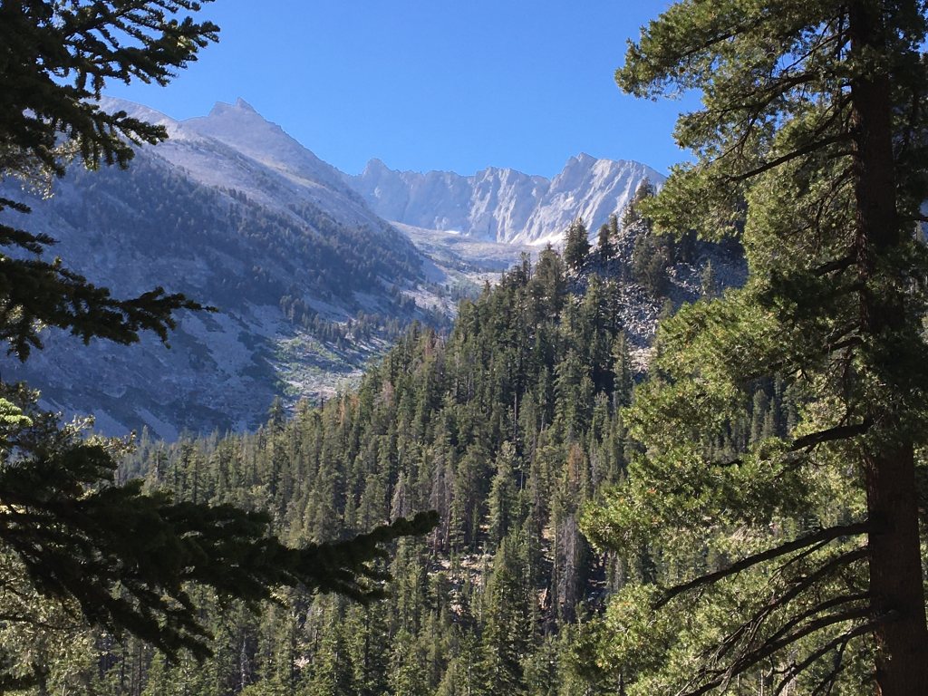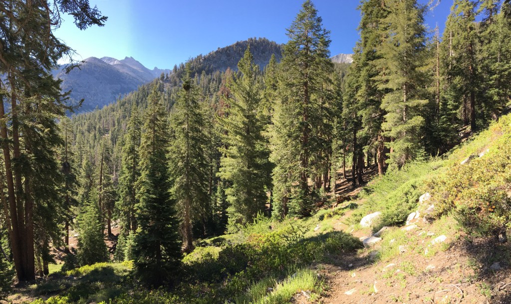 What a day! 8 miles, over Avalanche Pass at 10,097’ and down to Roaring River. We got up early as we knew we had a big climb and long day. The trail up to Avalanche pass was in the trees and very steep at times. Water was scarce but we filled up our water bottles from a small trace of running water and arrived at the pass around 11 am. Unlike some more spectacular mountain passes in the Sierra, Avalanche Pass was really just a large flat area and still below tree line even at 10,000 feet. Once there, we exchanged high-fives, ate lunch, and rested a bit. The altitude was still affecting all of us.